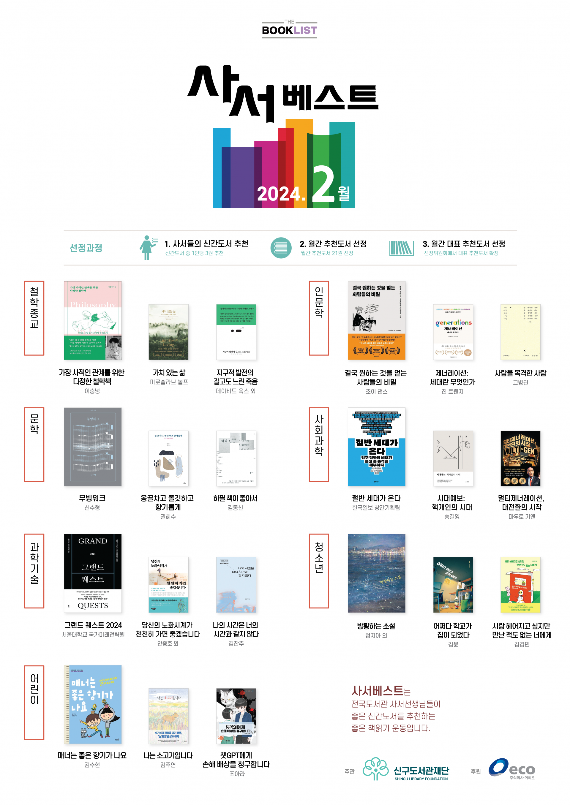 신구도서관재단이 2024 사서베스트 2월 추천도서를 발표하였습니다.